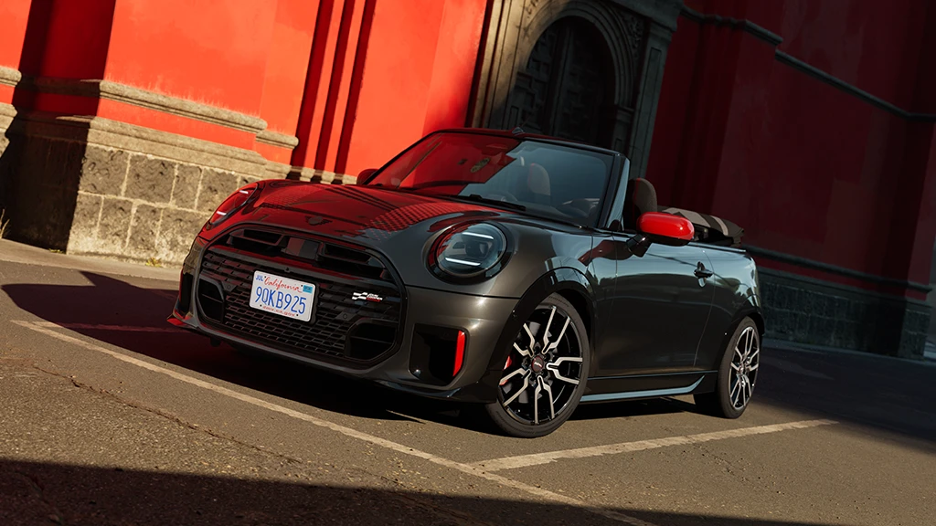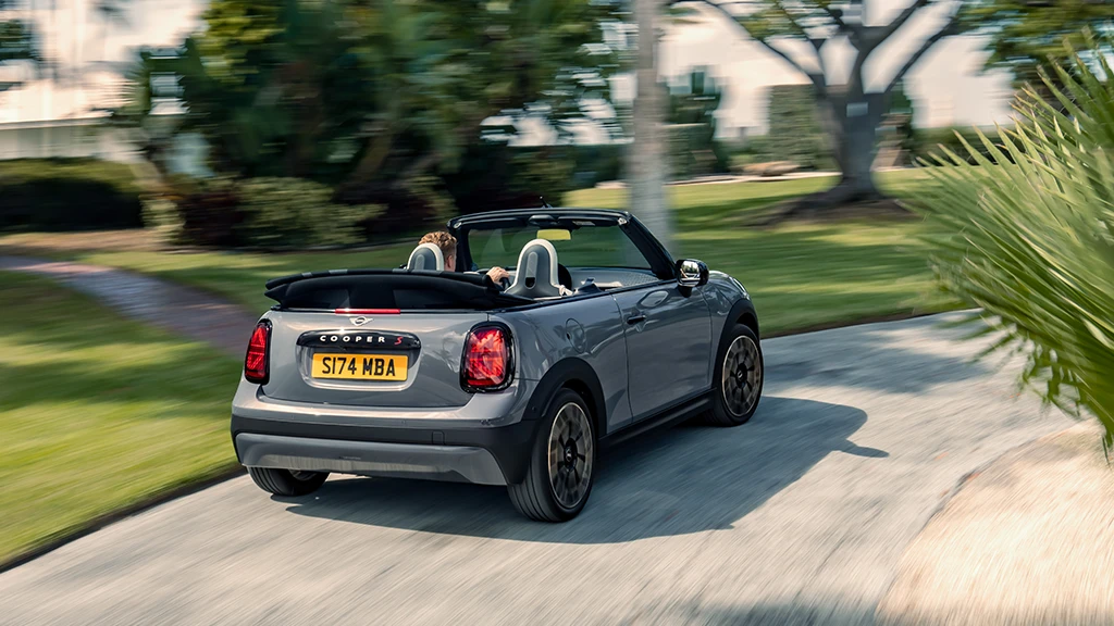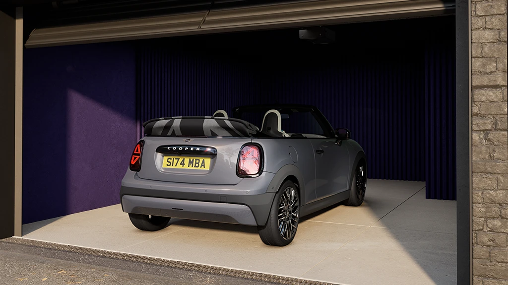 Jā, mīkstā seguma jumts elektroniski salokās apmēram 18 sekundēs, pat braucot ar ātrumu līdz 30 km/h. Tam ir trīs iestatījumi, ieskaitot MINI tradicionālo lūkas režīmu un jumts tiek atbīdīts atpakaļ, lai ļautu salonā ieplūst līdz 40 cm platai gaismas joslai. Kad automobilis ir novietots, varat atvērt vai aizvērt to attālināti. Varat pat lejupielādēt lietus brīdinājuma lietojumprogrammu savā viedtālrunī, kas informēs, ka jāaizver jūsu automobiļa jumts, ja pastāv iespējamība, ka sāks līt lietus tur, kur esat novietojis savu auto.